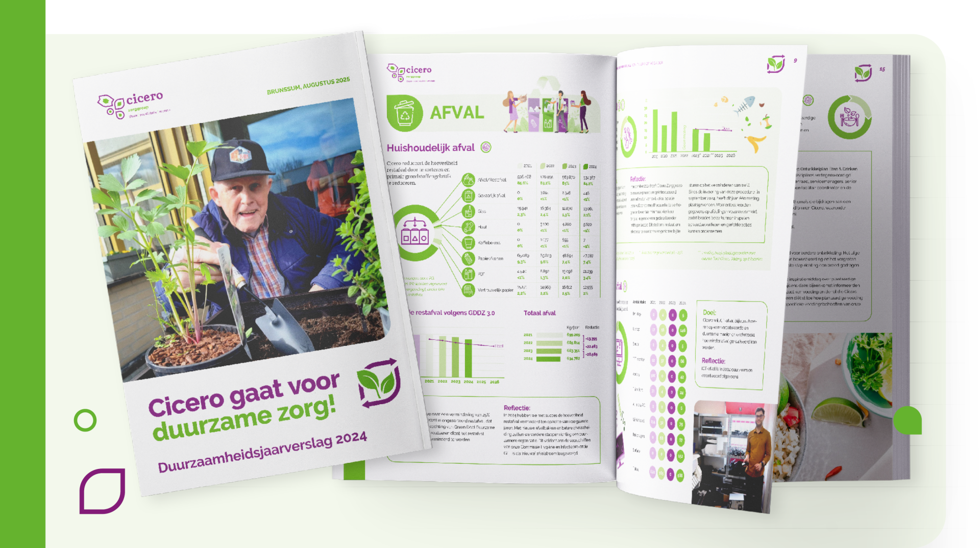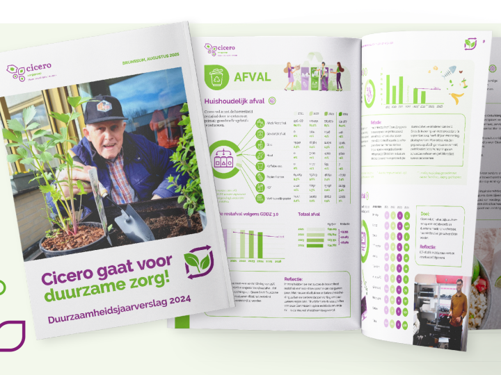 Begin augustus is het duurzaamheidsjaarverslag 2024 gepubliceerd op onze website, social media en @Cicero. In dit verslag blikken we terug op de duurzaamheidsresultaten van het afgelopen jaar. Zo zijn er belangrijke stappen gezet op het gebied van energiebesparing, afvalscheiding, circulair inkopen en de verbinding met duurzame inzetbaarheid binnen onze duurzaamheidsinspanningen. Ook de vormgeving van het verslag laat de laatste jaren een mooie ontwikkeling zien: echt iets om trots op te zijn! Maar de inhoud laat vooral zien: dankzij onze gezamenlijke inzet boeken we écht vooruitgang. Lees het verslag op: www.cicerozorggroep.nl/duurzaamheid.