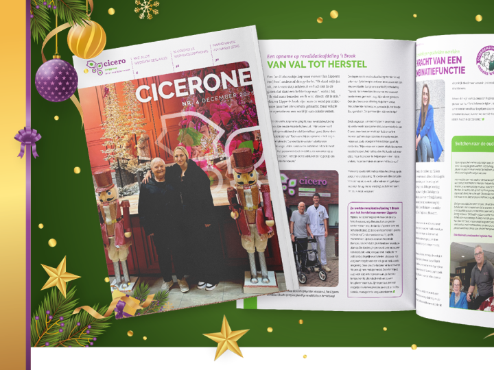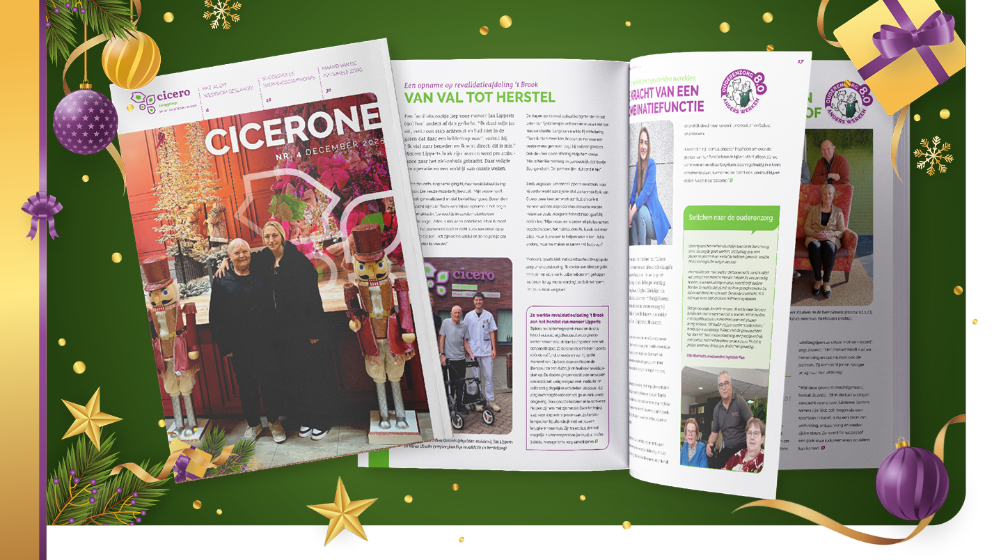 Het personeelsblad van Cicero is weer verschenen. In dit kerstnummer nemen lees je, naast veel nuttige informatie, ook mooie verhalen van collega's die vertellen over waarom ze naar de ouderenzorg zijn geswitcht, over werken bij Cicero met je oma/kleindochter en over hoe het is als je vanuit Thailand naar de zorg in Limburg bent gekomen.